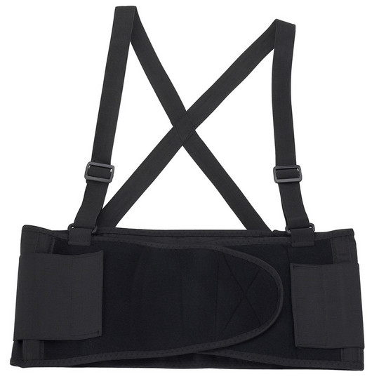 Back support belt with buckle fastening.